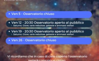 Ecco il calendario delle aperture dell’Osservatorio Astronomico di Piadera per il mese di Dicembre 2025. Gli oggetti da vedere sono moltissimi: ancora …