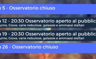 Ecco il calendario delle aperture dell’Osservatorio Astronomico di Piadera per il mese di Dicembre 2025. Gli oggetti da vedere sono moltissimi: ancora …